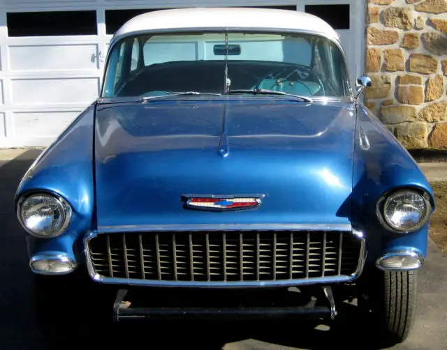 Factory Bel Air, Blue/White Ext, Blue Int, Comes w/2 V-8 Engines, Complete sweet running 350 4 Bolt Main Chevy & 427 V-8 Short Block, Newer Dual Exhaust, 5 Speed, Ford 9" Rear, Upgraded Front Disc Brakes, Aluminum wheels, Solid, Originally Rare 585 Code Factory Onyx Black aka *American Graffiti.