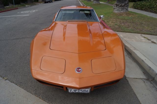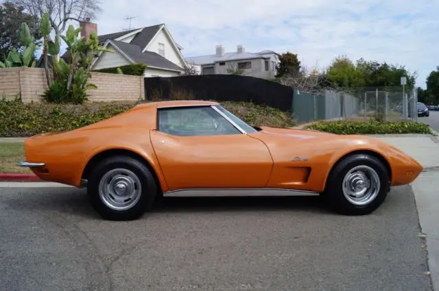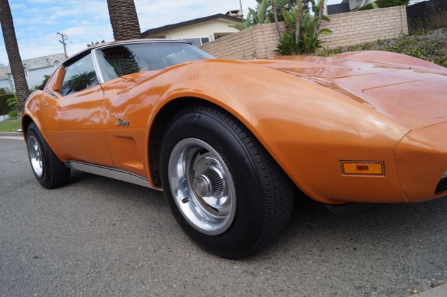 This Corvette has 51,451 original miles and has had 2 owners in 42 years.The car was obviously garage kept and very well maintained.The drive train is completely original with all matching numbers.The frame and all under car metal is in excellent condition, inor surface rust only.The engine runs like it was new, uite and an extremely smooth idle, nd the transmission shifts perfectly.The steering and suspension are still tight and the 4 tires which are about 60% worn, re worn evenly all the way across, he alignment seems to be right on. The brakes are newer, he radiator is new and is an original style copper brass, he upper hose is not correct but is new.The alternator has been replaced and the belts have all been replaced.All the fluids are clean and in good condition.All the gauges, eater, ir conditioning controls and lights work properly, ven the original radio works.The car was re painted the original color but I don't know how long ago that was done.There are a couple of things the car will need, he clock doesn't work and the vir valve for the the air conditioning has a refrigerant leak and should be replaced, he choke needs a small linkage piece that seems to be missing for some reason.