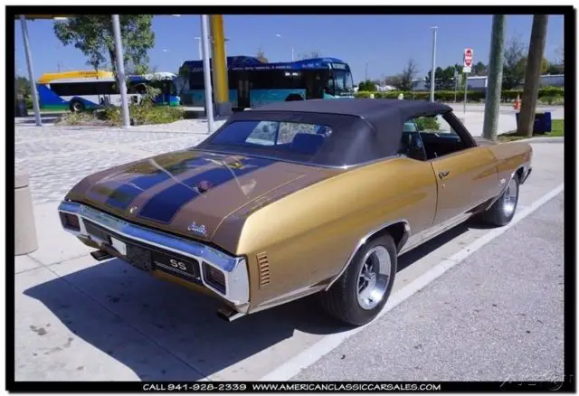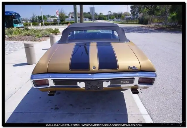To many, his is the one of the most collectible muscle cars of all time. Who doesn't want a Chevelle Supersport 454? This offers the gold exterior with black factory cabin package. Heres the best part... Factory Ac, speed, ransmission and bucket seat, onsole and the top is like new.Naturally will trade and we ship all over the world. Call now!Call 941-928-2339 www.americanclassiccarsales.com We buy, ell, rade, onsign, rrange shipping world wide and provide financing at competitive rates.
