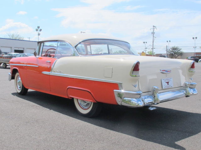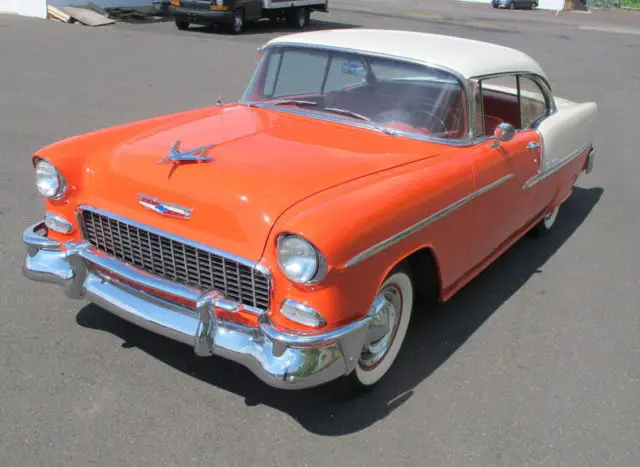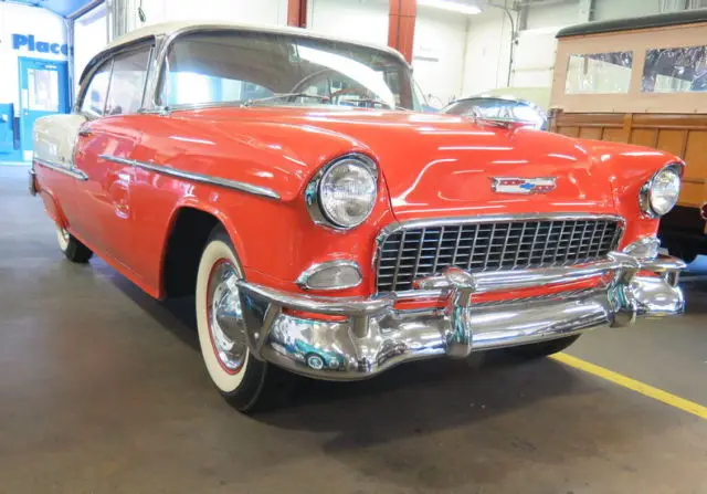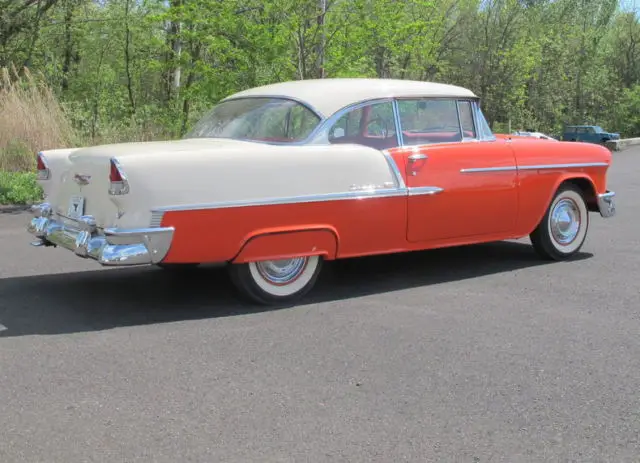 OLD FORGE Motorcars is proud to offer this stunning 1955 Chevrolet Bel Air hardtop. This '55 is out of a local collection and is in fantastic condition. This collector has owned this '55 since 1986. The India Ivory/Gypsy Red paint is recent and is stunning. The brightwork is in great condition except for some minor issues. The interior is also in great shape. The 265 V8 runs great as well as the 3 speed manual transmission.