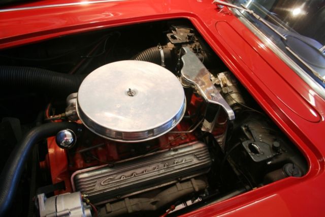 Engine (3782870) is a '62-'65 327 4-barrel carb. The deck code (F1107S) indicates this motor was built in Flint, Michigan and originally placed in a full size Chevrolet with a PowerGlide transmission. This motor runs very well! With the factory air cleaner & distributor shielding in place, the engine compartment looks like a correct 283 4-barrel, 230 HP original. Seals and gaskets have been replaced making this a drip free engine.