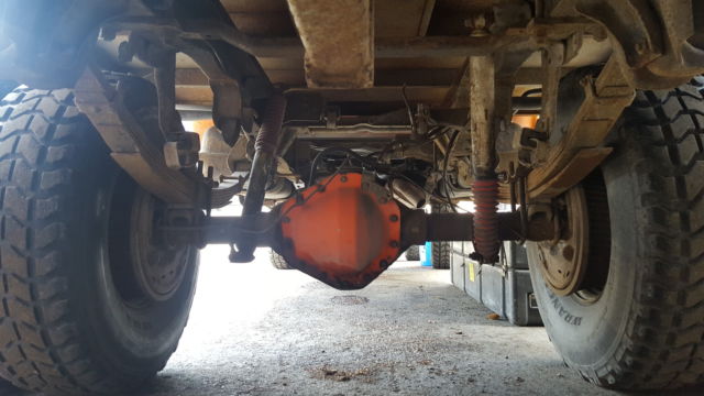 This truck is a beast, runs Most the Alaskan trails loaded down with wheelers or snowmachines like nothing.Front driveshaft is removed due to a blown locking hub that needs replaced, still a tank with just the back 4 powered.Truck is running and driving other then that, small oil and transmission leaks but nothing bad at all. Orginally a diesel truck with the 6.2. Dual electric cooling fans, one on thermostat, one switched for those long hills. Lift is all springs, no blocks, 10.5" 14 bolt with detroit locker, dual fuel tanks, winch bumper with winch, all steel flatbed with sides, older crate 350, rebuilt trans last year TH400, gear driven NP205 thansfer case, Dana 60 kingpin, 37" goodyear military tires.Orange body is rusty, but all the replacement parts come with the truck; rust free 91 cab with misc interior parts, mid 80s front doors, and complete 79 front clip.