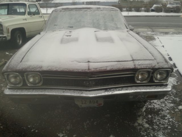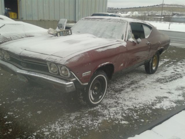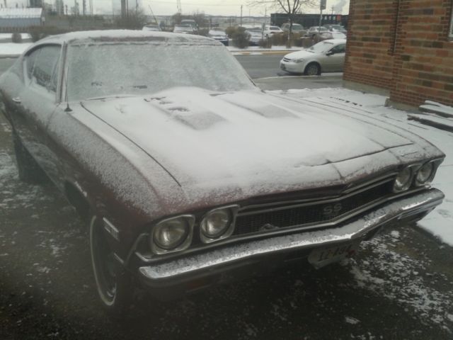 1968 SS 396 Chevelle, automatic, factory tach. No visible rust in floors, trunk, frame, rockers, or fenders, as pictured. Polished a spot on the hood the see the old color and ground on a rocker to see metal. Car old car is sold "as is". The original color of this car is light green and had been painted burgundy years ago. Last licensed on 2001. The car comes with the correct factory replacement in1968 engine. The car now runs and drives but has only been driven less than a mile around the neighborhood.