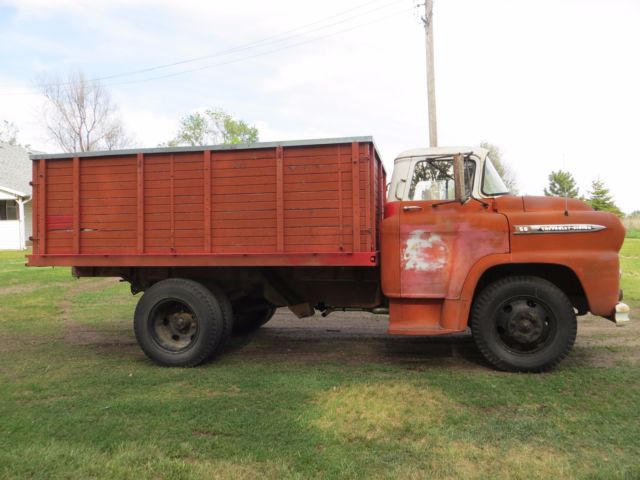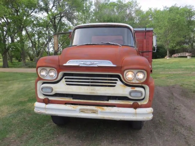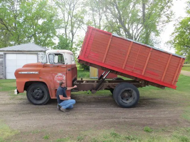 1959 CHEVROLET COE TRUCK has ORIGINAL SMALL BLOCK V8 WITH 4 BARREL CARBURETOR. Truck runs very good. Good oil pressure. Charges, drives nice, and brakes work good. Original key still locks door, and glove compartment. Tires all hold air good. Body is VERY GOOD! it's going to need a patch panel here and there as seen in pictures. Hoist works good. Two speed rear end is not shifting in high, didn't check over..probably electrical. Pictures show condition very well !!! Any questions please feel free to call or email me. 605-228-8627. RESERVE THE RIGHT TO END AUCTION! IF YOU WIN THE AUCTION, PLEASE PAY PAYPAL! FULL PAYMENT WILL BE ACCEPTED THRU PAYPAL.