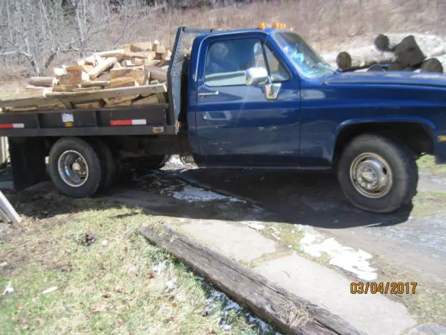 Up for auction is my 1988 Chevy 1 ton dully that I used for my salvage business since 2010, the 454 was built same year, has edlbrock1607 with aluminum intake headers dual exhaust msd hyper Tec distributor cap, I put new starter, fuel pump, new radiator hoses, new brakes front and back, rear drums, plugs, wires, cap rotor, alternator, ect you get the idea, interior is fair no carpet dash has a cover because it cracked, seat cloth dark gray, not all trashed needs cleaned, tires are all like new 235x85x16,The truck has been good to me but it is 28 years old and has issues, has hood paint peeling from theme flooding it carb back fired, (oops)left fender someone hit it in parking lot, have abrand new one that is including with the sale,just down sizing getting old I work driving truck don't have the time or energy any more want get something newer.Was using till May when the plates ran outThe truck is for sale as is where is no warrantee or guarantee buyer pays all shipping coast if chose to do so,Will help any way I can to help load I will answer ay questions I described the truck to the best of my knowledge or ability