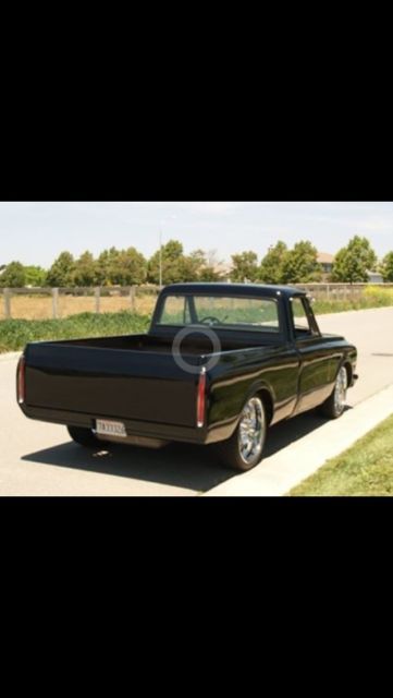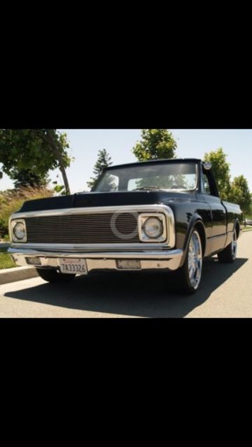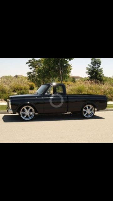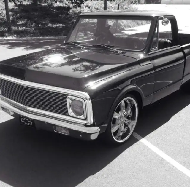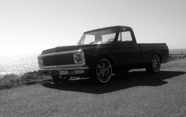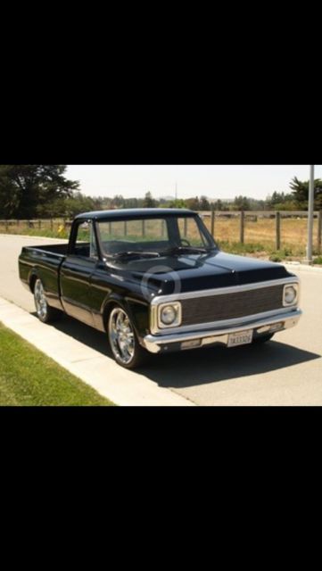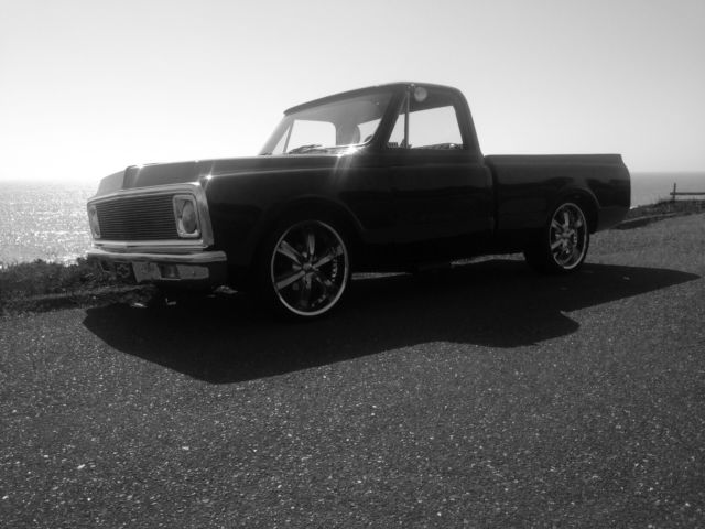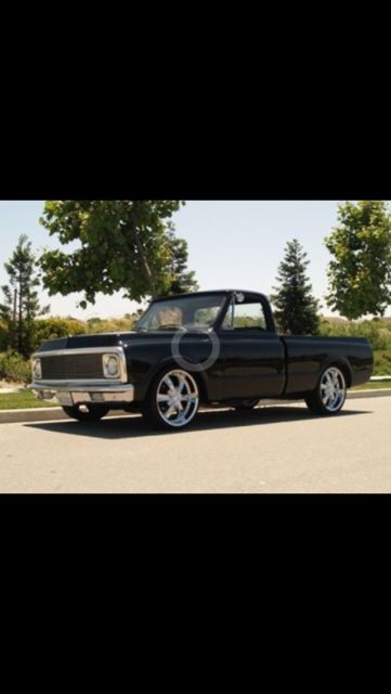 1971 C-10 custom standard cab pickup.•All moldings, side markers, emblem holes, gas filler and bed stake holes have been metal filled and welded. Rear tail lights have been modified and housed with welded in Cadillac led taillight buckets. Rear roll pan has been screwed and welded. All seamlessly and professionally labored.•Interior: new carpet kit sounddeatning all throughout cab. Dash has been shaved and pad holes filled and welded flush. 6 piece AutoMeter ultra-lite II gauge set. Stamped aluminum door panels with billet crank and door release levers. New window regulators and complete soft seal weatherstrip kit on doors, windows and firewall. HEARST quarter stick with custom console. Factory bench has been torn down and refined with all new components. New underpad with memory foam topper. Heated seat panels installed and black factory look genuine leather upholstery. Two 10" kicker comp subs. Kicker components and kicker digital SMS all mounted on custom rack on back wall of cab. 6 point cage in cab with the two rear down tubes yet to be ran out the cab. (Didn't want to cut cab). •Underhood: all blasted and re sprayed canyon satin black with clear. Firewall had been flushed and heater delete. CPP master cylinder on wall, MSD box And fuel injection resovour mounted with billet custom mounts. Tubular motor mount perches for solid mounts and 4core griffin race radiator and tranny cooler with electric fans and custom billet shroud for cooling. Undercover industries body fillers clean up the compartment•Engine: 4 bolt main 420cu in Motown Lite block with all 4340 eagle/Manley rotating assembly. 6" rods. 11.25:1 compression JE pistons with rings filed for nitrous. AFR 230 aluminum heads with Yella Terra shaft mount rockers with alternating 1.5/1.6 sizes. Manley valves with true double valve springs and special keepers. Custom grind can with .620 bump and roller rockets with true billet double roller timing chain complete the full roller motor. Notched zink oil pan holds 8 qts. Intake is a one off sniper lookalike... only weighs two pounds and is sheet metal. An FiTech 1200 throttle body with on dash control fills the beast with fuel. Two stage 250 shot of nitrous express has yet to be pushed. Hughes th400 full auto/manual tranny with lighted driveshaft. Mounted with tubular cross members