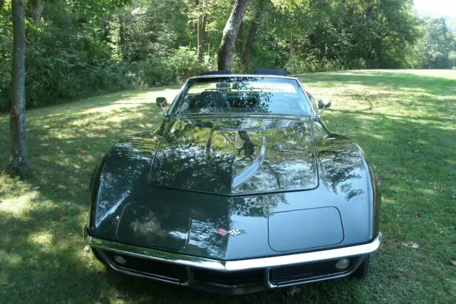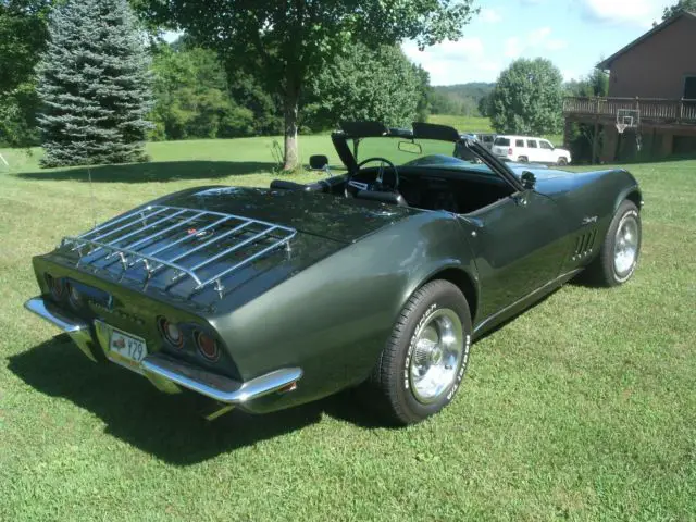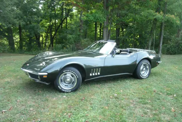For sale is a 1969 Corvette convertible. 35,643 miles. Numbers matching (L46) 350 / 350 HP and (M21) 4 speed transmission. (983) Fathom green with (ZQ4) black interior. Also has power steering, Power brakes, Tilt-telescopic steering column. (A must have option in Corvettes) AM-FM stereo, White soft top and auxiliary hard top. The car is a very nice strong driver, All the lights and gauges work including the clock. The frame in very good condition with no rot. I purchased this car in Feb 2014 from a gentleman who bought it from a storage locker auction. The car had a 7/91 inspection sticker on it so it was in storage for 23 years. To get the car on the road it received new tires, brakes, calipers, stainless steel lines, clutch pressure plate and bearing, Alternator, Starter, Steering rag joint, Sway bar links, Stop light switch, Headlight actuators, Wiper door switch, Belts, Hoses, Filters, Plugs and Points. Also sent out the original carburetor had it rebuilt and set to factory spec. In 2015 the car was repainted and received new Door handles, Mirrors, Antenna, Luggage rack and Emblems. In 2016 the car received new Carpet, Comfort weave seat covers with new foam and seat backs, And a arm rest was added. And in this past year the radio was replaced with a new retro stereo with mp3. Asking $29,500 or best offer. Also for sale on Craigslist Pittsburgh so auction may end with out notice. Any questions or offers please email.