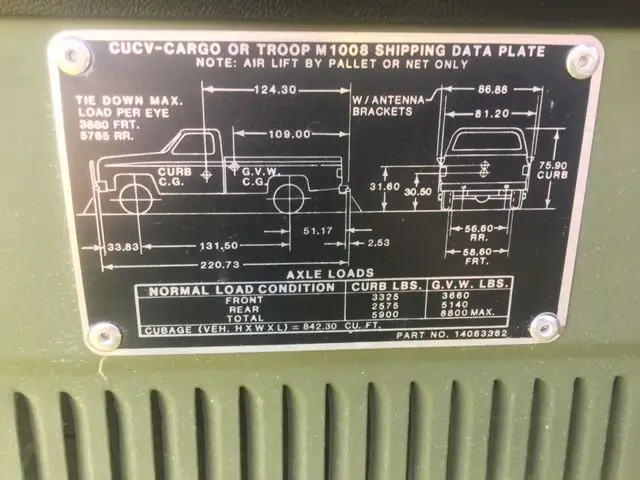 86 M1008 1 1/4 ton, 4x4 Chevrolet CUCV, 6.2 DIESEL
