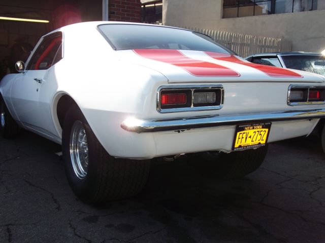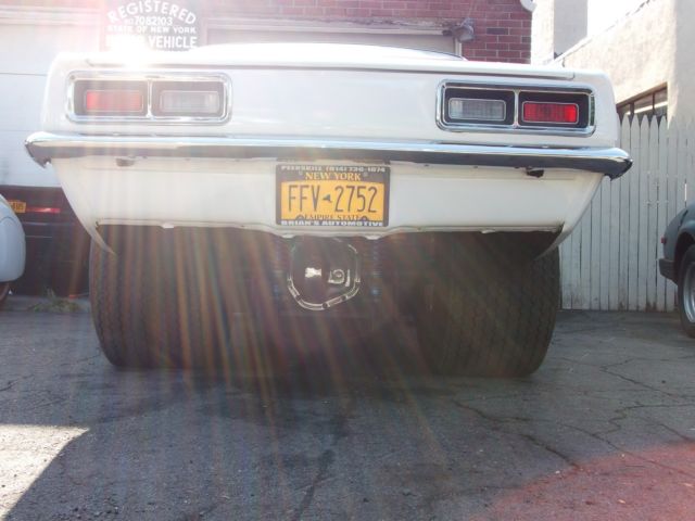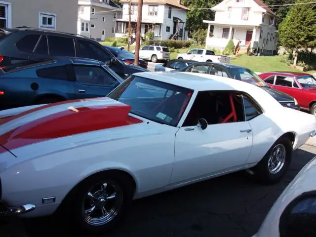 So here we have a 1968 camaro that was a former race car. It has started it's way back to a street car now. The raace motor and trans have been pulled and a very mild 454 was installed with a 350 automatic trans behind it. I have no real info on the motor it was in the car when I got it and seems to be just a simple street motor. The transmission also appears as a stock 350 its shift fine and the fluid is clean. The rear is a dana 60 narrowed with 456 gears so highway friendly it is not. The backhalf is an art morrison rear clip with a 4 bar suspensionset up with coil over rear shocks. The rims and tires are new. The paint is in good shape makes it an eye catcher. The interior is all aluminum and we covered it with black carpet for some sound and heat protection for street use. The fuel cell is mounted in the trunk and the trunk is also all aluminum. The cage is all welded in place as it would need to be for safety at the track. The lights are all now working and all the glass is in the car. It needs some small stuff like rubber door seals and door panels but other than that it's in pretty nice shape. Please check out the pictures ask me what you need to know and I will answer you as fast as possible. If you want to see the car please email me and we can set up something if you want more pictures thats possible also, in other words lt me know what I can do to help you make a descion on the purchase of youe next hot rod! THANKS FOR LOOKING!
