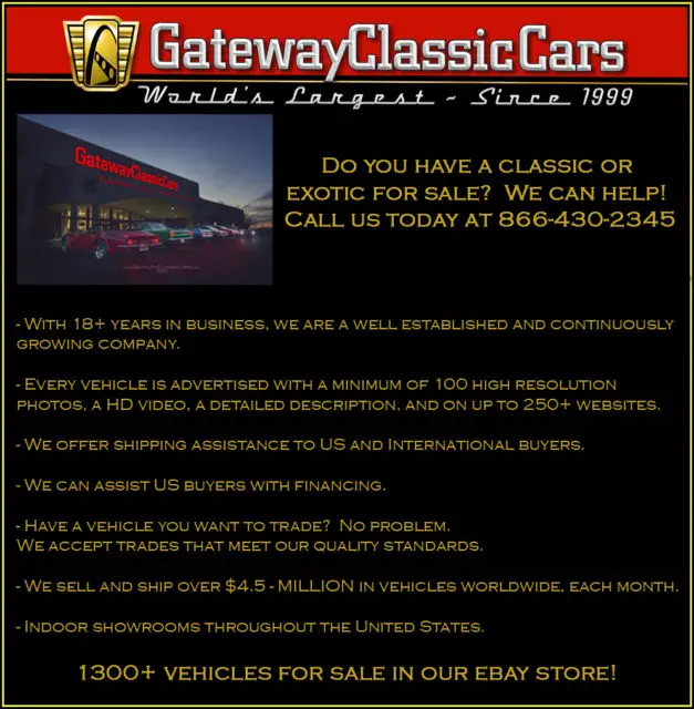 The body was fully restored by Hausfeld Classics. It has an estimated $18,000 paint job. Paint is flawless!!! Body is flawless!!