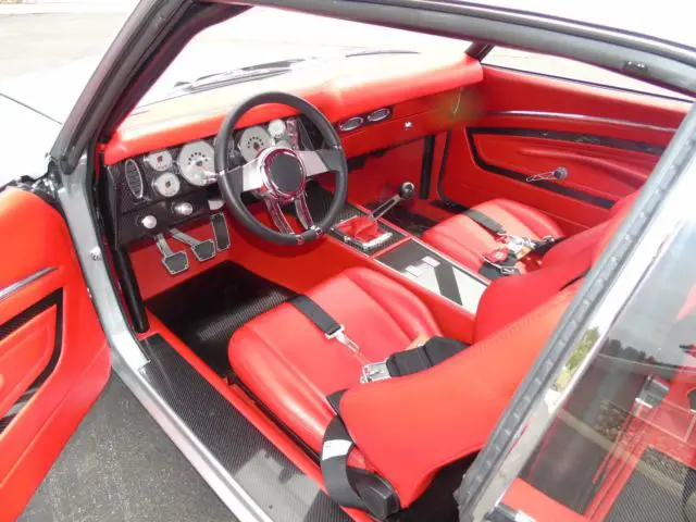Interior: The cage is a DOM seamless tubing. Hi quality leather and carbon fiber throughout. Custom dual battery in series mounted underneath in the back. Custom features with ash tray laptop plug in, power off switch in the glove box. SPEK NASCAR gauges, which are very trick with all the vitals and more. The custom console serves as the backbone to the monocoque chassis with cross beams to rockers with support and connections to all aspects of the suspension all underneath the interior. Full custom interior with comfort and performance in mind. No carpet, carbon fiber floor panels front and back. Custom gauge panel one off designed and molded with carbon fiber. Tilt, custom foot pedal assembly with custom shifter. Vintage AC with racing belts. Very nice and functional with a clean finished touch. Custom door panel and seats. All interior carbon fiber pieces are custom made in house at Hendricks Motor Sports.