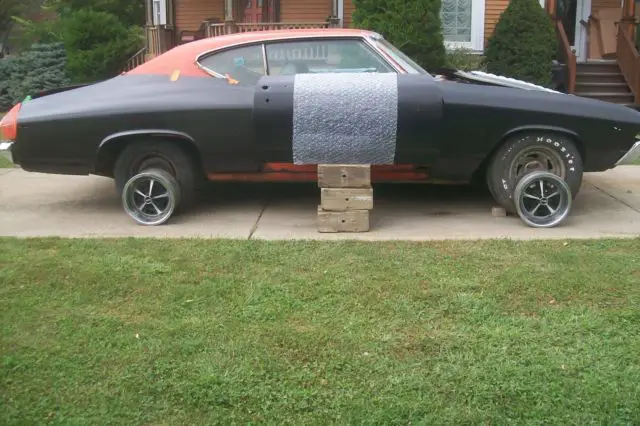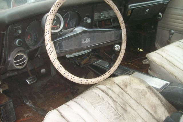 1969 Chevelle...SS 396...4 Speed Muncie...Muncie 4 Speed Shifter...12 Bolt Rear end...New Body Panels: Hood...Front Fenders...Door Shells...Quarter Skins...Trunk Lid...Front Inner Fender Housings...Header Panel...Front Apron; New Front and Rear Bumpers...4 speed clutch assembly intact...This car appears to be an unmolested original...very rusty! Also...the engine heads appear to be L78 and the engine does turnover and seems to have good compression. Interior is very complete...seats covers are usable...but should be replaced if doing a complete restoration. New side glass is also part of the auction.
