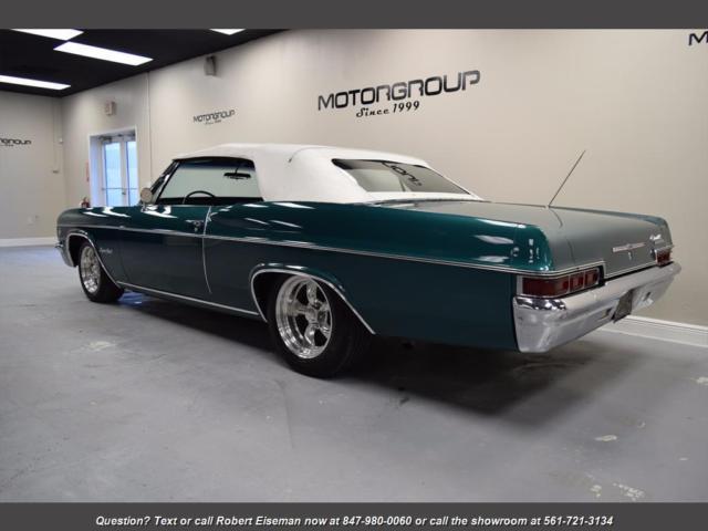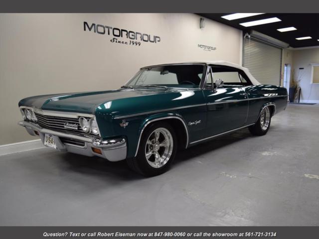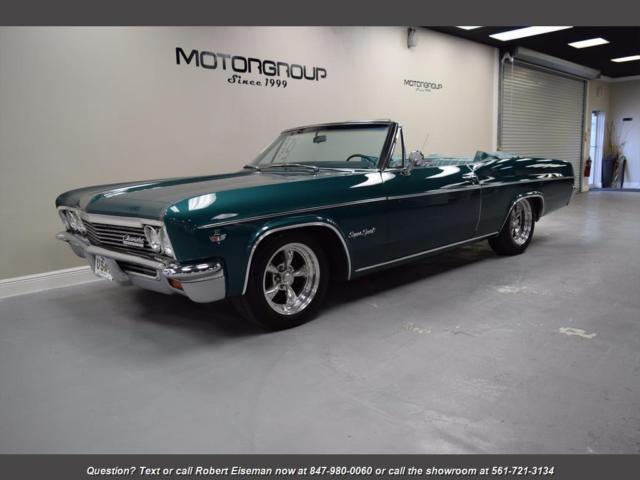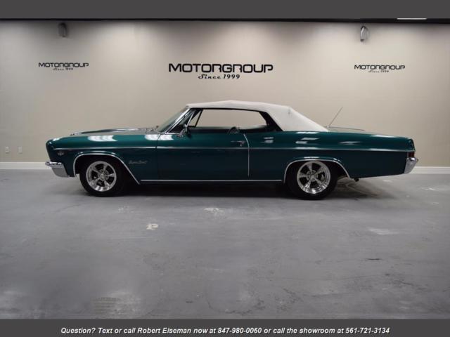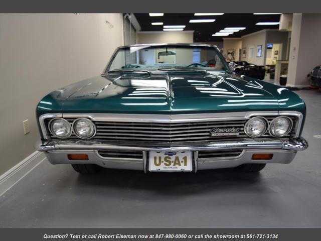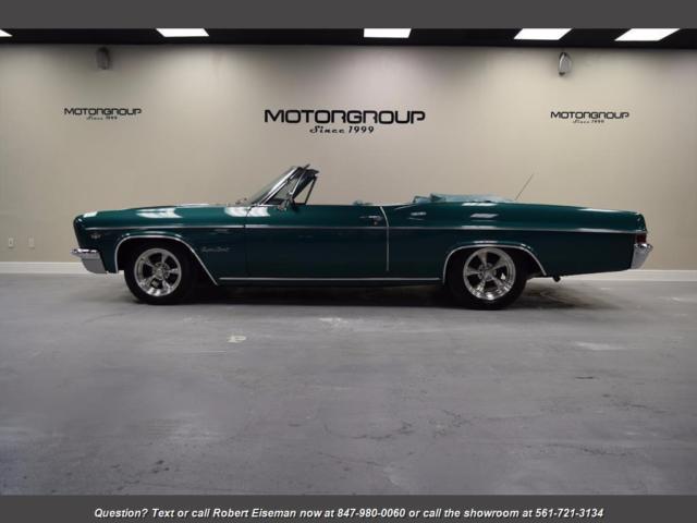 This 1966 Chevrolet Impala SS Convertible has a 327 C.I. 4BBL V8 (Date Code Correct), Automatic Powerglide Transmission, 10 Bolt Rear w/ 3.08:1 Ratio, Correct Tropic Turquoise Exterior, White Vinyl Top, Correct Turquoise Bucket Seat Interior, Power Steering, Power Disc Brakes, True Super Sport Impala Convertible, Power Top, AM/FM/CD Stereo, 17'/16' American Racing Wheels, 2 Speed Wipers w/ Washers, Day/Night Rear View Mirror, Detailed Engine Compartment, New Carpet, No Major Restoration Ever Do...ne to the Car, A Great Super Sport Impala!! We offer financing, worldwide delivery and third party inspections. Call Artie at 561-829-2345x7 or text/call Artie at 561-829-2345 or text/call 561-829-2345.