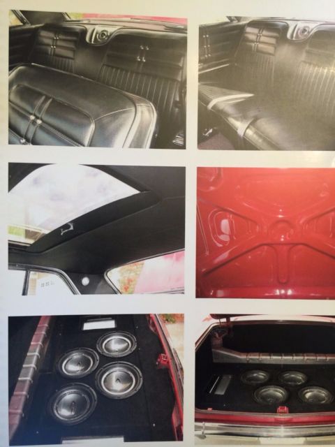 350 cu engine, Holley custom carburetor, Edlebrock aluminum intake manifold, 4 speed manual transmission, Hankook low profile tires, American racing 20" torque thrust wheels, Flowmaster dual exhaust system, Hurst style shifter, Custom adjustable rear and front airbags, Custom wool carpeted trunk, Custom Kenwood amplifiers 1800 watts of power, 4 custom trunk mounted 10" EFX subwoofers, Sony Satellite Radio CD player.