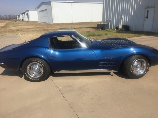 1971 Chevrolet Corvette LS5 454 all numbers matching.This vette has fresh restoration, paint is perfect, the interior is in great shape, and with rebuilt engine, 12k in the engine alone.I have over 100 pictures of the restoration and engine rebuild.Highly option classic, leather, wood grain, tilt, telescopic, AM/FM radio, AC blows cold.Beautiful Bridgehampton Blue with Removable back glass, and Tee tops.Everything works as it did in 1971, the fiber optics even work.This is an investment grade classic, you wont be disappointed.Any questions, or to see in person, call;Tim @ (214) 914-4305I've owned this vette since 2008