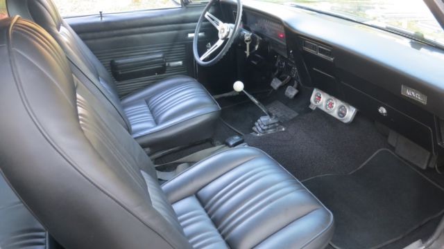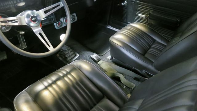 The engine is a fresh 350 4 bolt main block, stock heads, Wieand aluminum intake and a new Edelbrock 600 CFM carb. The car has a new 4 core aluminum radiator, electric fan cooling system and a late model factory serpentine belt drive system. The car has headers and a Flowmaster dual exhaust system. The 4 speed trans has a new Hurst shifter. The interior is all new. New sport steering wheel, new carpet, new front and rear seat covers. All new door and trunk seals. All lights, gauges, horn, wipers work well. Car has GM seat belts. The car has an aftermarket stereo and rear speakers in the package tray area.
