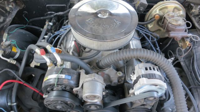 The front end looks good, all components look to be new within the last few years, the rear end is the original 10 bolt with factory multi leaf springs. The wheels are 15in, corvette rallies with original GM rings and center caps. The exterior chrome, bumpers, and trim looks to have been replaced sometime ago. Just installed a new set of radial tires, a new clutch, pressure plate, and power steering gear box. All parts under AutoZone warranty. The trunk has new splatter paint, a new rubber matt with a spare tire and wheel Options: Power steering Power front disc brakes 4-Speed Factory A/C Tinted glass.