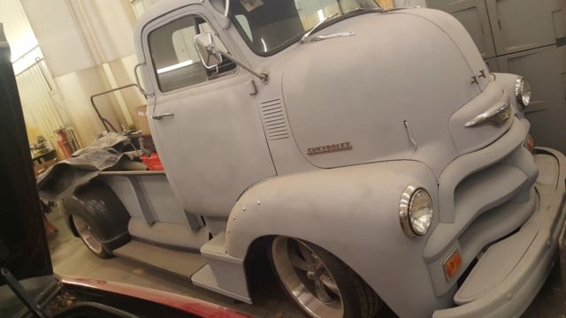 FOR SALE IS MY 1954 CHEVROLET CAB OVER;EXCELLENT METAL. NO RUST ; ALMOST READY FOR PAINT;LOTS DONE;ITS BUILT ON A S- 10 CHASSIS,HAS THE V-6 MOTOR WITH AUTO TRANNY;I HAVE HAD THE MOTOR RUNNING IN THIS TRUCK;IT STILL NEEDS TO BE FINISHED;IT NEEDS THE STERRING COLUMN PLUMBED IN;IT NEEDS THE BRAKES PLUMBED IN;IT NEEDS SOME WIRING DONE; IT NEEDS A DOG HOUSE BUILT OVER THE MOTOR;IT NEEDS PAINT;EVERYTHING IS THERE;MOSTLY JUST NEEDS SOME SKILLED LABOR;I HAVE SPENT THE BIG BUCKS ON THIS AND AM WILLING TO SELL AS A PROJECT;THE BOX IS BRAND NEW;REAR FENDERS ALSO BRAND NEW;TIRES AND WHEELS ARE NEW;STEERING AND BRAKES ARE NEW RADIATOR IS NEW;'MANY BUCKS INTO THIS; MY LOSS YOUR GAIN;I CAN HELP ARRANGE REASONABLE SHIPPING ;QUESTIONS CALL JEFF 218-464-2821SELLING AS IS, NO WARRANTY.THE SHOP HERE CAN FINISH THIS FOR YOU AT ADDITIONAL HOURS AND MATERIALS CHARGES.