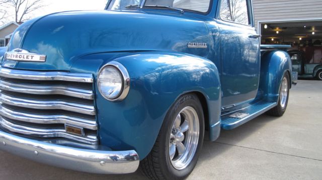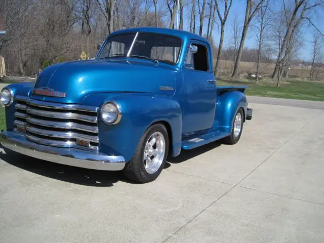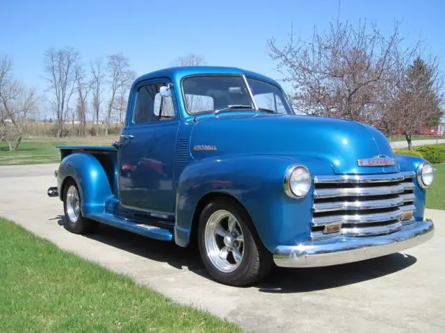 1953 chevy truck 3100. Truck was restored and built about 12 years ago. Less than 10,000 miles 0n 350 engine, 400 turbo transmission. Camaro front suspension with chevy 10 bolt rear 3.08 gear set. Truck has 4 wheel power disc brakes, power steering with tilt column, 2 1/2 inch dual flowmaster exhaust. All the glass and weather sripping are in excellent condition, nice interior, door panels, and headliner. Newer 12 volt wiring system, 12 volt electric wipers, electric cooling fan. No Rust, paint is 12 years old, base clear with typical stone chips, few scratches, but paint still shines very nice. Truck runs and drives excellent! 350 is a 1986 4 bolt main, .30 over block, with stock heads, aluminum intake, newer 600 edelbrock carb with electric choke, mild cam. Engine does not smoke,leak,studder,stumble,knock, etc. It starts and runs great!! Trans is 400 turbo with shift kit performs excellent with no leaks or issues. Truck cruises 70 mph at 1800-2000 rpm No shimmy, no shake, no tire rubs.. 16 inch American torq thrust polish with newer tires (last summer) fronts 215/65R 16 rears 255/65R 16. The 4 wheel disc brakes are awesome and look brand new. Newer chrome bumpers, new hood emblem,oak bed with stainless hardware. I have owned and driven this truck over 2000 miles without any issues. Great driving and very comfortable. I did not build this truck, the information provided is what I know of, and information provided to me by the previous owner. Doors shut great with no wind whistle going down the road. Truck does not have a stereo or heater. Newer auto meter gauges. Included in sale, set of gray leather power bucket seats. Truck currently has a very nice gray cloth beanch seat. If you have any questions please contact me and I will try and answer. Serious only PLEASE! rhall12@frontier.com