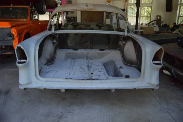 1955 Chevy 2 door sedan Post car. Roller, project car, have all sheet metal. Top is very rusty, have a good clip top that goes with car. Floor pans good, trunk floor need 2-3 small patches, have front lower quarter patches, 4 fenders and 3 doors. Have drive shaft, new aluminum radiator with two tubes that need to be blocked off, All glass have two sets of bumpers, no interior but have inside window trim. Also have complete fiberglass front end for an extra charge. This is a total project. Has original title !!!!! I have a 1966, 283 engine, power glide trans, for extra $500. Message me with your questions.Also have a 70Chevytruck long bed, Roller with clean TN title that needs restoring,and have new tail gate and corner patch panels, for sale notincludedin thisauction. Will text pics if interested.