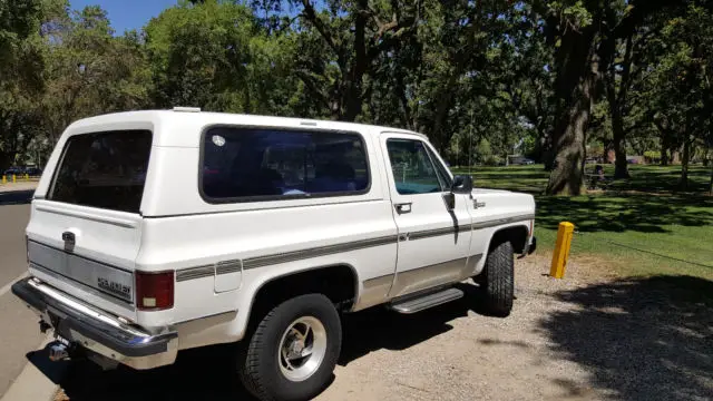 Great running K5 Blazer with many extras (From: California). This is a 4x4 currently setup as a 2 wheel rear drive for better gas mileage, but front drive shaft is included in the price to easily make it a 4x4 again. The replacement Goodwrench 350 engine runs strong and starts right up. Exact mileage of replacement Goodwrench 350 is estimated to be around 45,000 miles. I've not run this K5 off road. New tires, brakes, & clutch recently replaced (also has RV brake controller, tow hitch, and electric lighting connectors), and has extra heavy duty leaf springs installed on the back. Heavy duty 2nd AC unit installed in back which provides plenty of COOL AIR!!!! New Radio-CD-USB system. Vehicle has an oversized radiator and doesn't overheat when pulling a trailer or boat in the summer. This Blazer has been well taken care of, and has all kinds of extras. I have paperwork on the different work, parts, and extras that have went into this K5.