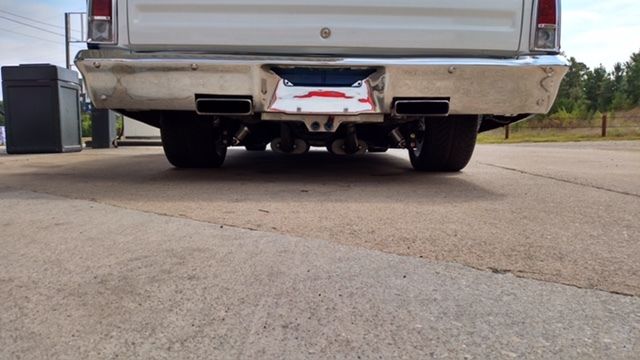 Flowmaster ceramic coated mufflers & 3” ceramic coated exhaust out the rear and the bumper notched for the square tips.