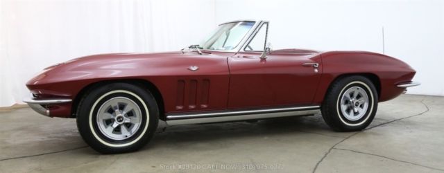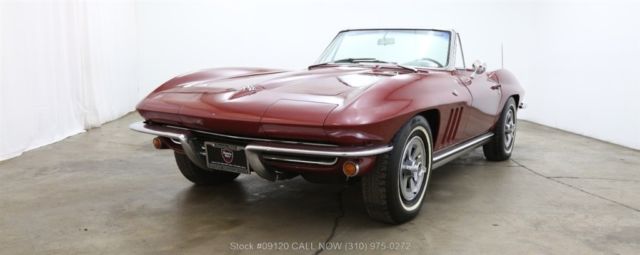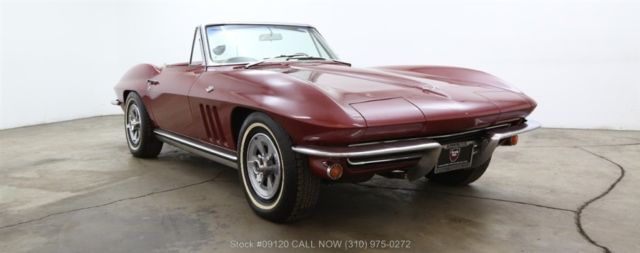 1965 Chevrolet Corvette with 2 topsThe beautiful 1965 Chevrolet Corvette featured here with matching numbers and 2 tops is available in burgundy with black interior. It comes equipped with a 327 with a 4-speed manual transmission, wood steering wheel, OEM radio and with solid wheels. An excellent weekend driver which is mechanically sound. For $46,500If you have any additional questions Please call 310-975-0272 or email with any questions! We also welcome all international buyers. We can help with shipping quotes and arrangements.