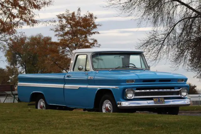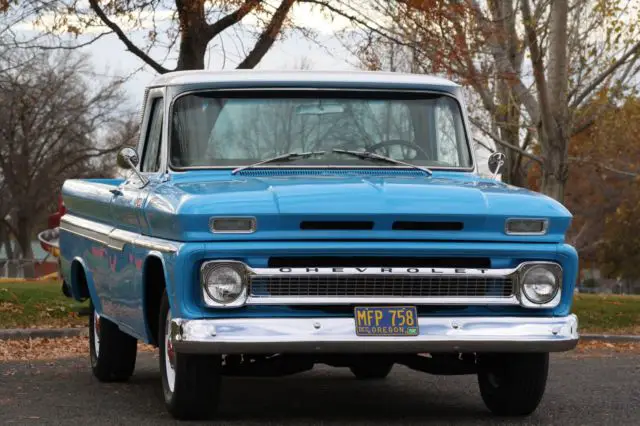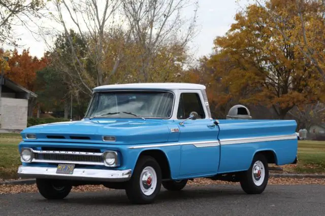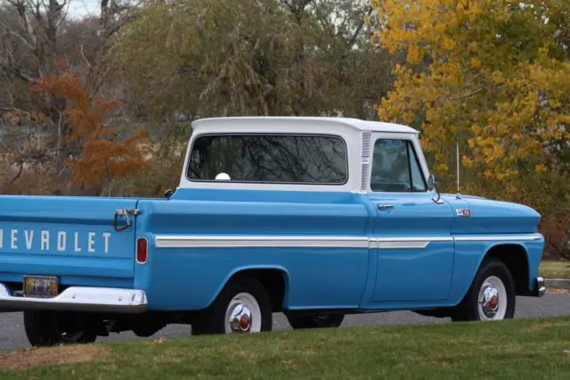 This truck has the big back window, Custom Cab, 283 V8, automatic transmission (rare) and power steering. The paint is a base/clear and is a very high quality paint job. It has no rust issues or any accident history.