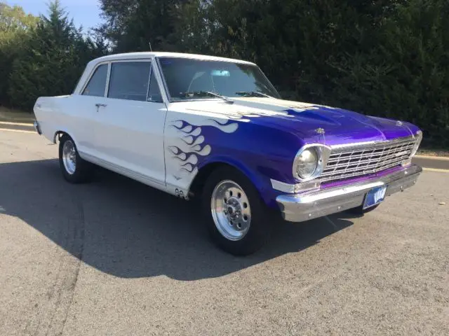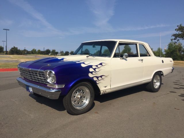 1964 Chevy nova, 350V8 30 over, 350 automatic transmission, B&M shifter, Pete Jackson gear drive, comp cam, hooker super comp fender well headers, HEI ignition, edelbrock carburetor and intake, floors and trunk are super solid original pans and trunk, traction bars, air shocks, very good daily driver runs and drives great, sunpro gages, fiberglass hood, good tires, nice flame paint job, flow masters, single track 10 bolt rear end, not sure what gears are but they aren’t real low good street gears, good car fly in and drive home, as is where is, buyer responsible for shipping, all sales final call 501-733-1695 for questions