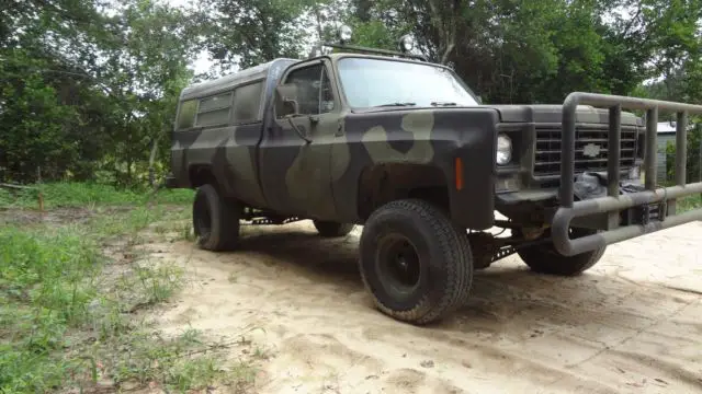 1977 chevy k10 4 inch lift axle trusses, straight drive 350, edelbrock carb, locking rear end, nice easy to work on truck when needed. xtreme heavy front bumper/brush guard with heavy duty 8000 lb ramsey winch heavy rear bumper that stores deer/bear cleaning boom that mounts on bumper. 12 inch rim, currently 33 inch tires. good condition, the raggedy camper shell on there gos with truck left it on to keep things in bed dry. has new master cylinder and power steering pump just put on. driver side window crank needs fixing as well as a new hinge on the glove box. there is a hot cam in the engine and its not the best on gas but was not built for gas milage. some surface rust on the aftermarket hood... and few places around the body . many of the body parts have been replaced with parts off of 74-80 trucks. has the heavy duty manual 3 speed transmission with low.