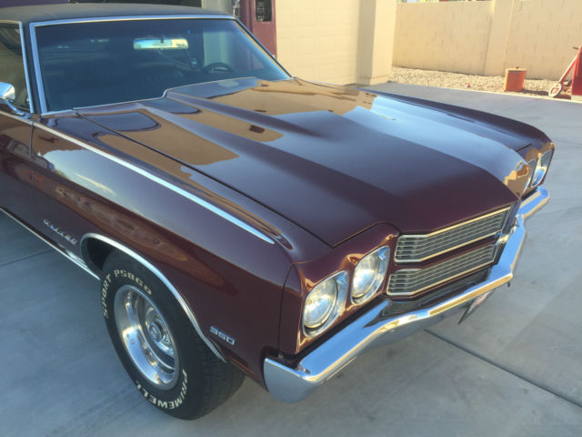 1970 CHEVROLET MALIBU. 350 V/8, A/T/, P.S., P.B., ENGINE & TRANS HAVE APPROX. 5000 MILES ON IT. FLOOR & TRUNK PANS ARE EXCELLENT.PAINT AND INTERIOR ARE VERY NICE. CAR RUNS AND DRIVES LIKE A DREAM.THIS CAR IS ONE OF THE CLEANEST CARS I'VE HAD IN MY COLLECTION.PLEASE CALL DJ 928-606-5615