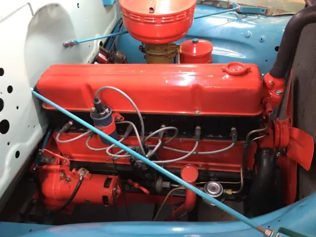 It had been dismantled and everything but the body was sandblasted and powder coated. It has the 3 speed transmission, and 235 6cyl. The brakes are brand new and engine was restored. All of the glass is there and in good shape.
