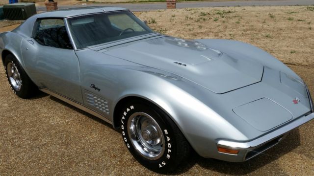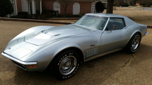 1970 Corvette LS 5 454CI 390 HP. Factory numbers matching car. Only 2 owners from new. Rare automatic transmission with factory air. This was a Canadian general motors factory built 454 engine with highest compression available that year. T-Top roof, new radiator and stainless brake calipers all around. Astro Air ventilation option. Removable rear glass. Cortez Silver with black interior. 69K original miles. Drives and sounds like a Big Block car should. Your chance to own an investor grade collection car that will continue to increase in value over time. This is a must have for beautiful spring days.