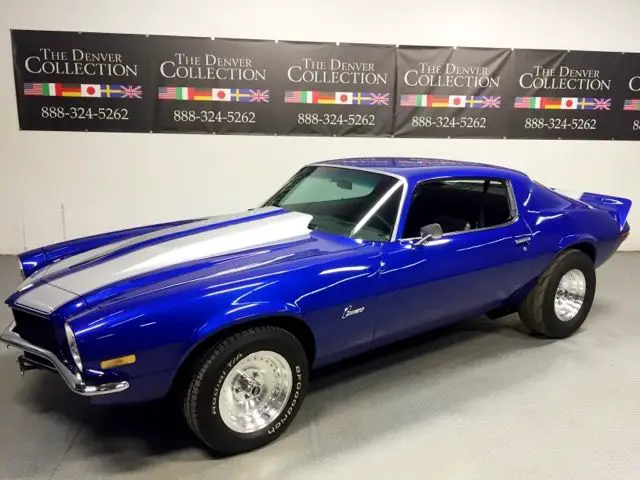 If you are looking for a street car that you can also take to the strip and run a .11 1/4 mile look no further!!! This 1970 Camaro is just what you have been looking for. Aside from the amazing blue paint with painted silver metallic racing stripes this 1970 Chevrolet Camaro is sure to start conversations where ever you go. The Specs: 383 Stroker with 150 shot nitrous. This motor was specifically built to handle nitrous 10:9 SRP forged pistons Comp Cam-Extreme energy Cam World Heads-Cast Iron Eagle crank Eagle rods (383 Stroker kit) High volume oil pump Edelbrock 750 CFM carb Edelbrock Airgap intake manifold Mallory HEI ignition New plugs and wires Cylinders bored .60 over. Heavy duty timing chain Engine balanced at machine shop K & N airliflter New belts Holley Blue fuel pump and in tank electric fuel pump Electric fan New radiator and overflow reservoir Headers with Custom 2 1/2 Exhaust with balance tube (H pipe) Steel braided lines Polypropylene engine and transmission mounts New starter and flex plate Turbo 350 Rebuilt with PINK racing clutches good to 600HP 2300 Stall converter B & M shift kit B & M reverse lockout shifter Balance custom drive shaft with safety loop Sub-frame connectors Rear air shocks Traction bars Eaton Posi-Track/3.73 gears. Speedometer compensation Seats have been recovered New upper door hinges (GM) New door panels new window crank handles new door vents new door knobs new door strips 2.5' Cowl induction hood from Goodmark New front bumper and grill Body work done at Rowley auto body in Loveland CO. NEW: front left fender skindriver door skinboth rear quarter panelsinner fendersall glassall door and trunk seal rubberrear valiance (skin around tail lights) paint and clear coat. Also included are 2 Brand New BFG street rear tires and spare (not currently on car). NOS bottle mounted in trunk. Complete set up instructions and NOS/Carb jet kit for 100125150 shot nitrous. Small crate of extra parts. This car was done right and turns heads. Ran 1/4 mile around 10 times with 7 of them on nitrous. Runs on pump gas and drove it to the track. 20 minutes of adjustments and can safely run the NOS system. Best time at Bandemere which is over a mile above sea level was 11.8 Sec.1/4 mile at 118 MPH. The DOT street slicks are about 5 years old and should be replaced if you are going to run the nitrous system. Visit The Denver Collection online at www.thedenvercollection.com to see more pictures of this vehicle or call us at 888-324-5262 today to schedule your test drive today.