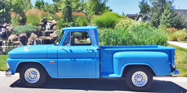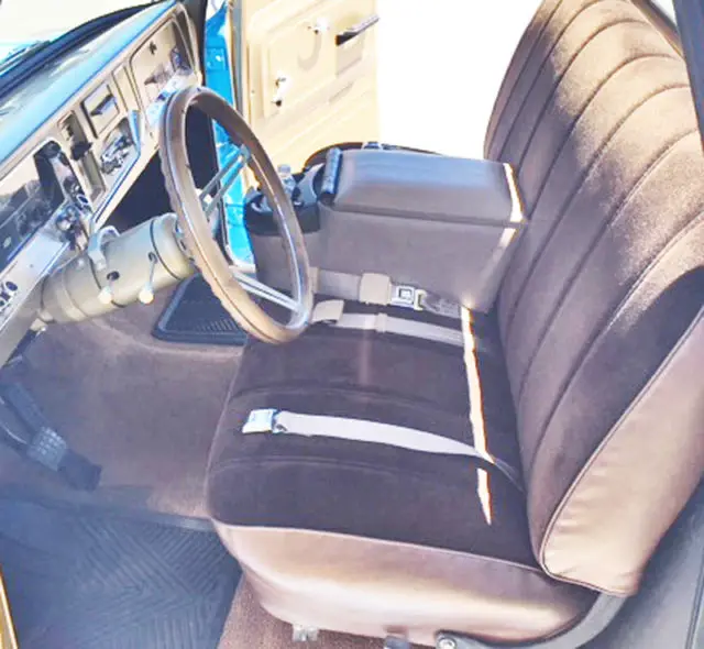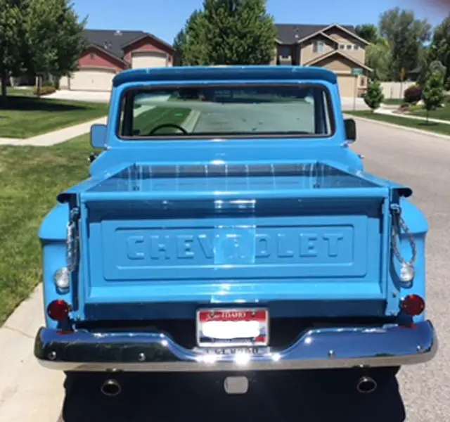 The big window Custom Cab was acid dipped, all rust areas on all sheet metal was removed and replaced with new steel, it was then sealed/primed and painted by one of the top auto painters in the Vancouver, Washington area in an original 1966 factory GM color called ‘Sky Blue’. It is a top-quality base coat clear coat paint with good depth.