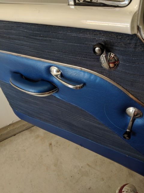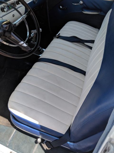 This 210 already gets the proverbial head start in the looks department, with just the visage you conjure up in your mind's eye when you think "50's Sedan". It's got generously-proportione, sturdy build, with beefy chrome bumpers and an ornate grille that sits just below that rocket-shaped emblem pointing the way forward toward your next adventure. Originally starting its life in beige, the exterior on this sedan has been brightened considerably with a two-tone, blue and white makeover configured to match the curvature of its exterior. The chrome trim is in especially nice condition from front to back and the panels fit together well, with no unevenness anywhere you look.It's got a slightly inclined stance while still lending itself to actual driving enjoyment. With its unique, 3 window to a side configuration and that's sloping roof line, it gives a definite nostalgic "best of the best".