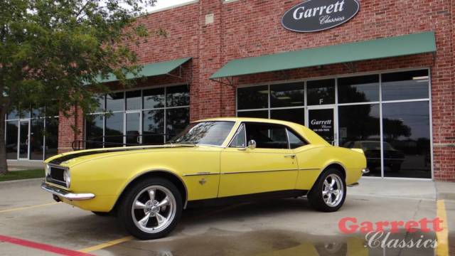 | 1967 Camaro 327 For Sale At GARRETT CLASSICS1865 McGee Ln, Ste FLewisville, TX 75077972-906-6327 This Camaro is a great car for someone wanting a semi project. It runs very well and has very nice original interior. It does however need some work. The paint has issues which you will see in the photos below. The undercarriage shots will show you some spots which need attention. Enjoy the video of this 1967 Camaro here.just click the above sentence Feartures Include: 327 Ci V-8 (non match)THM400 Auto Transmission10 Bolt RearDrum Brakes All AroundFactory A/C (in-op)Bucket SeatsConsole The body on the 67 is straight and solid. It's just that the previous paint and body work were not done properly, so there are some issues popping up. You can see tell tale signs of surface rust around the door jams and trunk lid and hood edges. None of it is major. The original interior still looks good. With just a little detail work, it would look great. The trunk seems solid and it does not look as though any of the rear quarter panels were replaced. The trim tag shows this to be an original yellow car with black bucket seat interior. The engine codes out to be a 67 327 275 hp V-8 from a Camaro but is not matching to the VIN#. |
