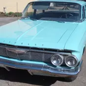 I have owned this car for over 20 years. It is powered by a Mark IV 502 c.i. big block, 442 HP 513 FT lbs of torque. I purchased this engine brand new from the local Chevy Dealer in 1994....installed it in the Biscayne and have not put 300 miles on it since new. The frame was removed, sandblasted & rebuilt w/new front power discs. 12 bolt Positraction rebuilt with 3.55 ratio and quick ratio power steering. The body has 80k original miles with a mint original black bench interior. Has vintage Sun Super tach and gauges. Floors are absolutely original and rust free, as is trunk floor. Only rust is in lower rear corner of rear wheel wells....smaller than 3" diameter. Doors are original & perfect. Front fenders are N.O.S. Car has original window sticker, owner's manual and dealer envelope. Was a 327 originally, sold new at Cooley Chevrolet in New Haven, CT. Engine has Hooker Super Comp headers, 750 CFM Holley, Accel HEI distributor, 6 qt. oil pan, Harrison 4 core radiator. Transmission is a B & M unit, TH400. Hole Shot 2400 converter and Stage II shift kit. Rear tires are Goodyear 15" street legal slicks mounted on vintage 8 1/2" wide 5 spoke Torque Thrust American alloy wheels. Keep in mind that this car's engine has only 300 miles on it since I built it over 20 years ago. Car drives exceptional....best described as a "Bear". Have video of doing hole shots....