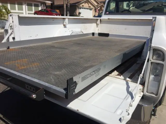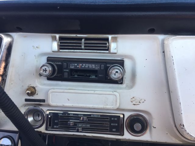 Amajority of this truck remains to be in original condition. Under the hood houses a powerful (rebuilt) 350 engine with a four speed manual transmission (granny), a comp thumper cam, Sanderson headers (withflow masters) and an Edelbrock carb and intake.The interior is in fair/good condition.The dash is in very good condition.As shown above, there is asmall tear in the bench seat, but has not affected the foam from within. All lights within the truck (including headlights) are LED's. The dash compartment houses a Pioneer Bluetooth radio with subwoofer (behind bench seat). There are two saddle tanks (fuel) attach to the undercarriage of both sides of the truck but are disconnected. There is also a BedSlide (sells for $1k on amazon) attached to bed of truck.