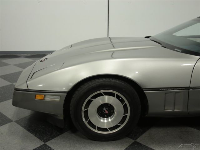 The Corvette hobby is one of the best in all of the automotive kingdom, with enthusiastic owners, great events, and, obviously, fantastic cars. This 1985 Corvette is a fast, fun entry-level 'Vette with no vices, excellent originality, and lots of documentation. It's rather rare to find an unmodified Corvette of this vintage, but this one has obviously led a very easy life as a fair-weather toy. Showing just 68,311 original miles, the bodywork remains in great shape, and while Corvettes of this period are known for being hardcore, this one has aged very gracefully with no cracks or obvious signs of hard use, and the shiny Medium Gray Metallic paint suggests that someone spent a lot of Saturday afternoons lovingly washing and waxing its sleek surface. The slippery gray paint itself is ideal, the perfect look for the high-tech 1980s, and if you think a gray Corvette can't be a hardcase, guess again, because this one rocks. The black rub strip that surrounds the body adds contrast and shows no UV damage, and the tinted windows combine with a smoked acrylic top to give it a no-nonsense look that really works. For a car that's more than three decades old, this one looks a fraction of its age. The C4 had a state-of-the-art interior in 1985 and it has aged well, both in terms of design and in this car's case, preservation as well. The leather seats are called "Graphite" and it works extremely well with the gray bodywork. Showing modest wear that's appropriate for its age and mileage, the interior is comfortable and inviting, but definitely performance-oriented with a driver-centric instrument panel full of digital gauges that are still bright and easy to read. Carpets and door panels show excellent preservation, as does the cargo area out back. Turn the key and the dash comes to life, and you have all the options at your fingertips: cold A/C, power windows and locks, cruise control, a tilt wheel, and an AM/FM/cassette stereo that still sounds great. Crossfire injection was dead, and the all-powerful L98 debuted in 1985. Torquey and as reliable as a mule, the 350 cubic inch V8 provided Corvette power for years and remains one of GM's better efforts. It's also insanely easy to modify, with a vast aftermarket designed around it. But a modified engine is also one that's been used hard, but you're in luck because this one remains bone stock. From the distinctive intake manifold to the finned aluminum valve covers, it remains clean and well-maintained, and thanks to GM electronics, it still starts instantly and idles like it should every single time. The 4-speed automatic overdrive transmission snaps off downshifts with only a light prod, yet cruises effortlessly at highway speeds and actually pulls down decent fuel mileage. The exhaust system is new and sounds awesome, the suspension still delivers impressive grip, and the brakes are powerful, even by today's standards. Original 16-inch alloys are in excellent shape and wear fat 255/50/16 performance radials that really fill the fenders. It's hard to go wrong with a Corvette of any kind, but this one that also includes a ton of documentation, factory books, and window sticker is a smart choice. Call today!