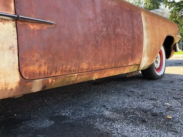 Car has rust, worst area is the trunk. rockers, and body are in overall nice condition. Trim is in great shape, it has all trim pieces. Glass is all intact, side panes have some hazing. All windows roll up and down.