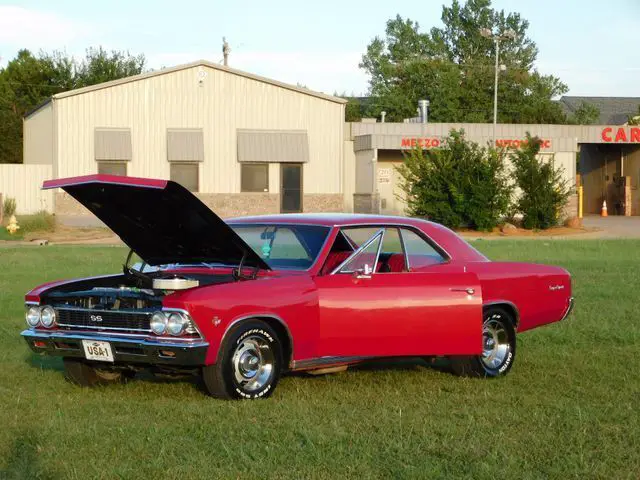 1966 CHEVELLE CUSTOM HOTROD ! VERY COOL LITTLE PUMP GAS STREET CAR WITH A ROWDY SMALL BLOCK 010 CASTING SHORT BLOCK WITH FORGED PISTON, HEALTHY CAMSHAF, ALUMINUM INTAKE, HOLLEY CARB, HEADER, FLOWMASTER EXHAUST /THIS CAR HAS A BUILT TURBO 350 TRANS WITH A SHIFT KIT AND STALL CONVERTOR. THIS CAR HAS A CUSTOM FITTED 9 INCH FORD LOCKING DIFFERENTIAL WITH 4 WHEEL POWER DISC BRAKES AND CPP MASTER CYLINDER . POWER STEERIN, RALLY WHEELS . WHITE LETTER TIRES . GM... BUCKET SEATS . SS HOOD AND SS EMBLEMS FOR LOOKS BUT NOT AN SS CAR .90S RED PAINT JOB AND INTERIOR THAT SHINE BUT HAVE BLEMISHES "NICE LOOKING CRUISE NIGHT CAR NOT A SHOW CAR" .... GREAT THROTTLE RESPONSE PLENTY OF HORSEPOWER !!COME SEE THIS ONE TODAY ......