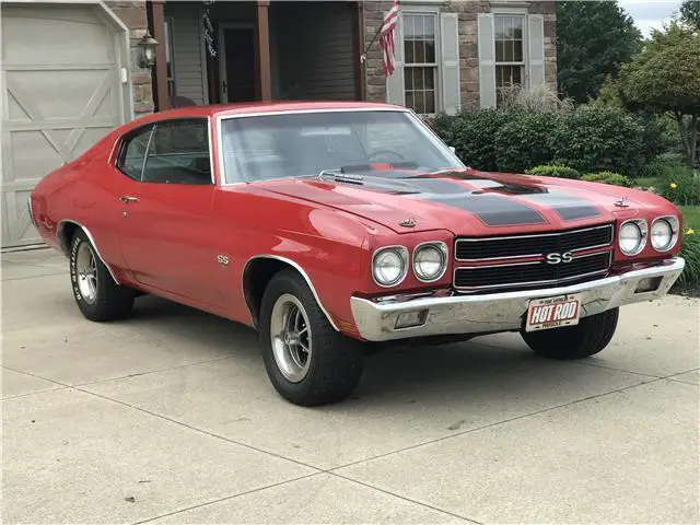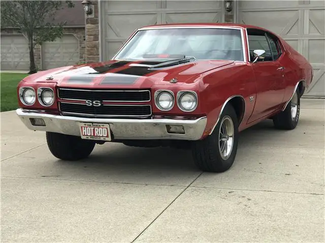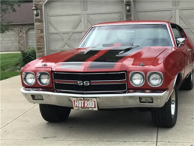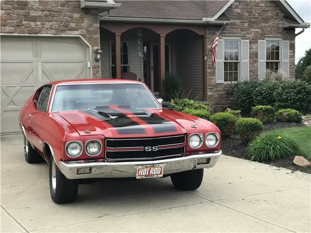 You are looking at a beautiful 1970 Chevelle SS N.O.M. LS6 454/450 hp CRV code with a 4-speed Muncie transmission!!This car is the REAL DEAL!! Canadian Built with documentation!!This Chevelle is equipped with:Power steeringPower disc brakesDual exhaust with correct exhaust tips12 bolt posi rear endBeautiful code 75 Cranberry Red Paint with Black stripesBlack InteriorFactory tach and gaugesFunctional Cowl Induction hoodAll original sheet metal/RUST FREE76,000 Original milesSame owner for over 20 yearsThis car shows well. Nice and straight. She will need... some freshening up to be at full potential. For more info call