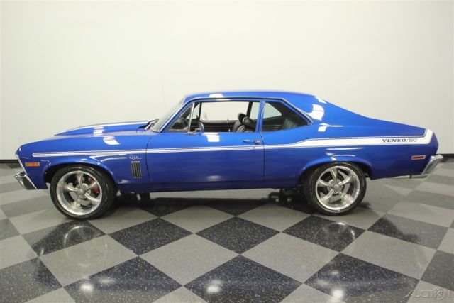 This 1972 Chevrolet Nova is exactly what you want in a muscle car. It has a mean stance, great paint, and HUGE power. Plus, it's a worthy tribute to one of the most celebrated names in COPO Chevys around: Yenko. But you can get all of this Yenko SS fierceness for a fraction of the price. This Nova is a serious contender from every angle. Up front is the SS badge on the intimidating blacked-out grille and the custom hood with power bulge. Plus, the large 18-inch alloys allow for modern performance tires and are a nice hint at an upgraded classic. But what really has you sold is the full paint package. There's a slickness to the blue that tells you there has been a nice investment in a professional application. There was a deep metallic element added, too, so you'll love taking this one out in the sunshine. Plus, it was recently buffed, so it makes the Nova's fastback profile look almost wet. And to top it all off is the full Yenko S/C white stripping package that accurately pays tribute to the best performance dealer Chevrolet ever had. This car wants to be intimidating at every stoplight, and you feel that in the interior, too. The black on the dash, door panels, seats, and carpeting is deep and dark enough to hold its menacing appearance. And the details are great with the correct Yenko headrests. As you slip behind the factory wheel, you'll instantly feel the tingle of power. After all, features like large SunPro tach w/shift light, full auxiliary readouts, and B&M shifter are all clear indications of something ferocious under the hood. Yenko cars are all about the power, and so you'll love seeing the engine bay filled with a 454 cubic-inch V8. The presentation is fantastic with the freshly painted big block and all the bright elements like the air topper, shroud, alternator, and valve covers. But once you look beyond the flash, there's some serious performance substance. The big V8 has been built with goodies like a large dual-feed Holley four-barrel carburetor, Edelbrock Performer intake, and Hooker headers feeding the growling dual exhaust. There's even an aluminum radiator to keep this monster motor running cool. In fact, while this is a beastly Nova, it's also quite easy to tame. That's thanks to features like the three-speed automatic transmission, power steering, rear traction bars, and front disc brakes. Having a nicely built Yenko tribute like this has the advantage of a mean appearance and the power to back it up. Best of all, it holds the looks like a priceless muscle car at a price that will make it fly out of the showroom. Call today!!!