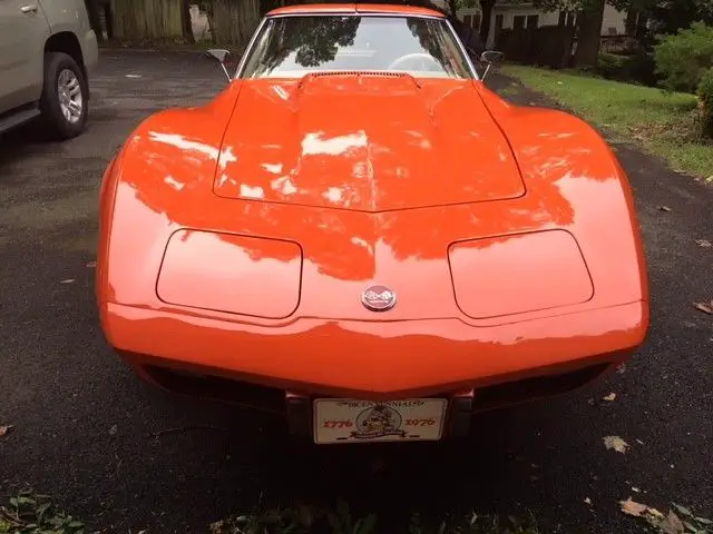 Up for grabs is this beautiful, factory fire red (orange) 1976 Corvette. This baby has matching number 350 motor and turbo 350 transmission. She has the leather interior package. factory air, power steering, power brakes and looks and runs great. This is a real head turner. It has an aluminum radiator and Stainless steel dual exhaust. Originally an Arizona car. will answer any and all questions.