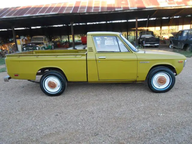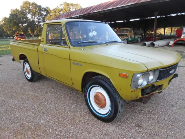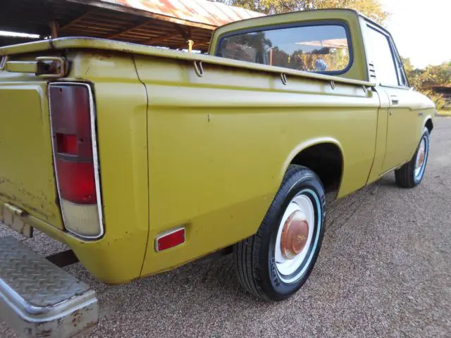 When I got it out of the barn it had been sitting in I put a new battery,plugs,wires,cap,rotor,hoses,belts,coolant,oil change, rebuilt carb,holly electric fuel pump and it now runs great. Went thru the brakes with new shoes,wheel cylinders,brake hoses,master cylinder and they stop good. The paint is awesome and only has the few little spots they all get in the same area's which are both lower doors have a few little bitty bubbles but nothing thru, 1 little bitty spot on pass lower front fender,drivers side bed has few bubbles by gas lid but not thru, lower tailgate other then that this thing is straight and looks amazing for a 43 year old survivor. The lower front metal piece by where the bumper would go can be straightened out real easy by hand when you get a bumper for it, I don't have one. The back bumper is perfect. Just put Brand New 14' inch whitewalls on the original white rims with the original hubcaps and still have the spare in the rear. The inside of the bed is really clean and straight so its clear it had a easy life and only has 3 little bitty rust spots that are tiny in the front of the bed you don't even notice . The floor boards were patched in a few areas and then rhino lined to seal the floor and make it look nicer as well as I had the seat recovered in a pretty leather with engravings like a gunstock and also the door panels,and put black carpet over the dash to hide the cracks and it made a big difference inside. All the gauges still work including the gas tank but did not come with ac from factory so there is no air conditioning but has a heater and vents. This little Chevy Luv is like a time capsule that was stored away in a barn for a long time and now brought back to life and is a fun little shop truck to drive around and also go junkin in. This will make someone a great little vintage truck to drive around and people love it we named it Sweat Pea because of the cool color. I've never took it on any long trips but around town it does good. This is probably one of the cleanest survivors out there and is complete and runs well. All I wanted to do to it was put a good stereo system in it,paint the top of the cab a off white and put a little white camper on it and it would of been cool but never happened. IF YOU HAVE ANY QUESTIONS CALL ME AT 512-760-5665 BECAUSE I DONT GET ON EBAY DURING THE AUCTION MUCH OR EMAIL SO I CAN ANSWER YOUR QUESTIONS IF YOU WILL CALL ME THANKS JUSTIN LOCATED IN ROCKDALE TX 76567 I REQUIRE A $500.00 deposit within 48 hours of the auction ending and the remaining balance within 7 days of the auction ending.