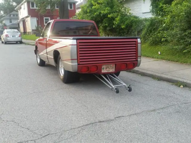 1985 Chevrolet S10 Pickup, Pro Street355 cubic inch small block . 202 head, four bolt main block, 350 Turbo Transmission with BM shift kit and BM Pro stick shiftier, 1977 Mustang 9 inch rear end, narrowed and tubed.Frame has been professionally narrowed. Hand made woodgrane dash with all new gauges, Mallory ignition and electric fuel pump, Wheely bars, Weld Pro wheels, 31x19.5x15 rear tires. Custom Tail gate and rear bumper, This car is buil for the street and has never made a pass down a track, lots of fun and lots of looks.