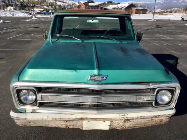 Up for sale is my 1970 Chevy C10 4x4 4 speed manual. It's an all original unrestored Colorado Forest Service truck that has been kept by the previous owners in running condition and driven often. I'm the 3rd owner after its duties in the USFS and I've been driving, preserving and cleaning it since. Although it's rusted and beat up in spots it has tons of character and awesome patina. The pictures show the purple iridescence and thats just one of the many cool things about this truck. When you yell into the truck it echoes back, and when you look in the rearview mirror, you look back in time.