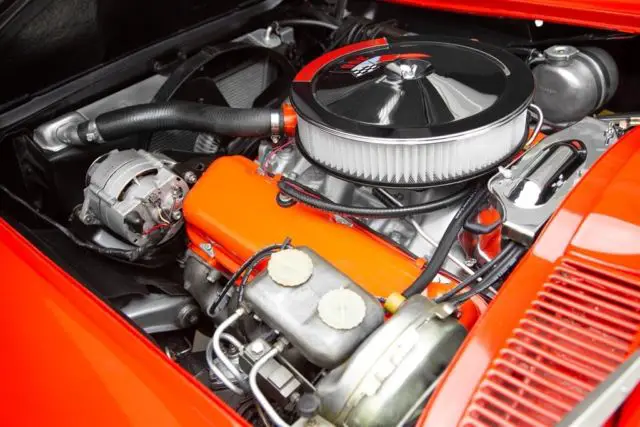 California Corvette Recent extensive restoration Original 900UU rally red paint code Corvette body with great body lines and panel fit Newer chrome bumpers front and back Newer trim and emblems Side exhaust Billett Specialties polished wheelsINTERIOR: