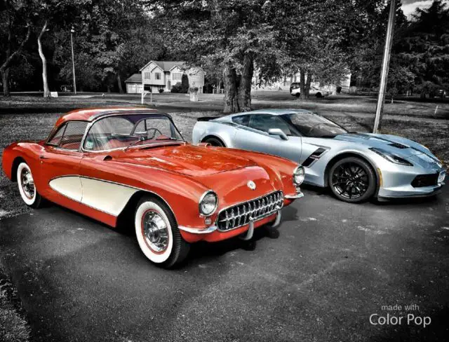 Beautiful 1957 Corvette. comes with both hard and soft top. 350 engine that runs excellent. Venetian Red (Looks Orange in the sunlight) Paint is a 9 out of 10, interior is brand new Al Knoch. Just about everything is original. All original gauges work, even the clock! After 60 years the clock looses a minute or 2 every week or so, so it may be time to rebuild it.